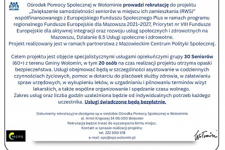 Ośrodek Pomocy Społecznej, Al. Armii Krajowej 34, 05-200 Wołomin, 22 787 27 01, 22 776 50 23, ops@ops.wolomin.pl